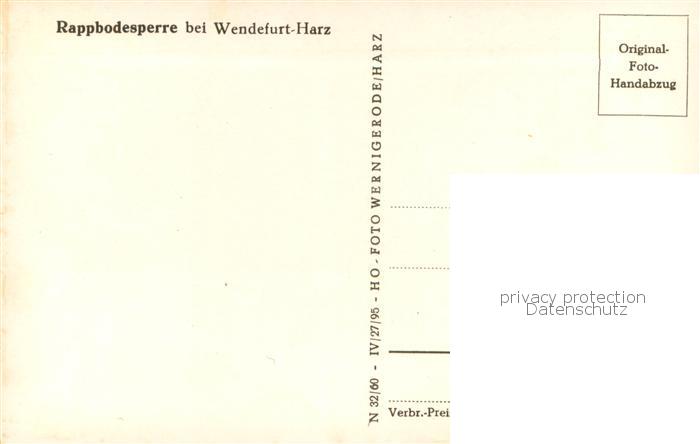 73776459 Wendefurth Rappbodesperre Sperrmauer Handabzug postalisch nicht gelaufen Erhaltung siehe scans [FriedD77] KatCode: 11110015085015