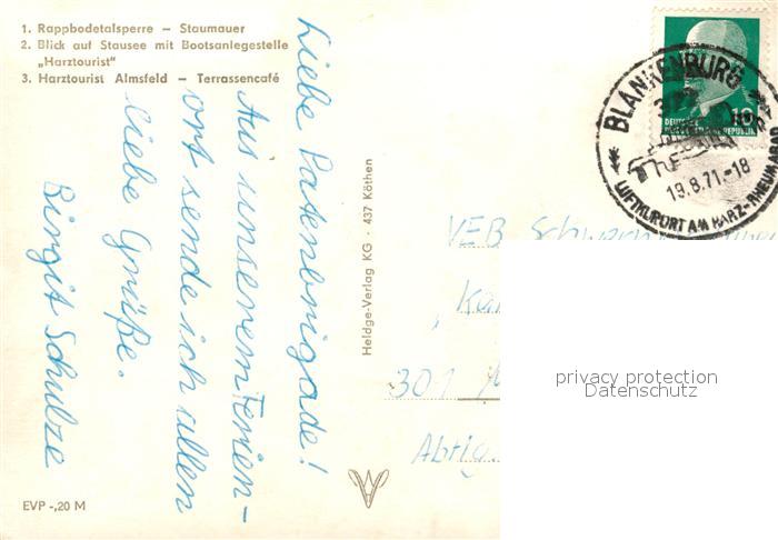 73137844 alte Postkarte Wendefurth Rappbodetalsperre Staumauer Bootsanlegestelle Harztourist postalisch gelaufen Erhaltung siehe scans [NatalD47] KatCode: 11110015085015