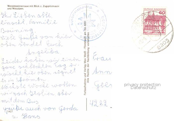 72783381 alte Postkarte Wendelstein Berg Berggasthof Aussichtsterrasse Zugspitzmassiv und Westalpen postalisch gelaufen Erhaltung siehe scans [FriedD77] KatCode: 11110009182112