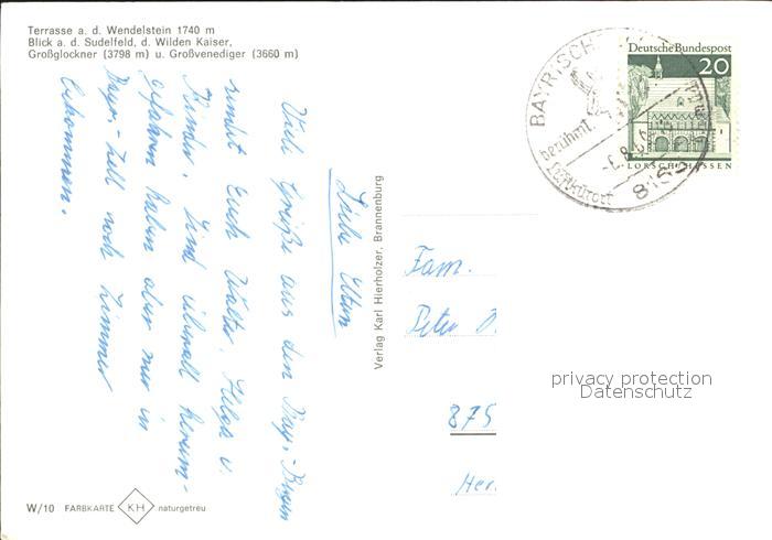 72258106 alte Postkarte Wendelstein Mittelfranken Aussichtsterrasse mit Sudelfeld Wilder-Kaiser Grossglockner Grossvenediger postalisch gelaufen Erhaltung siehe scans KatCode: 11110009576151