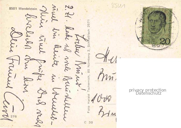 74049067 alte Postkarte Wendelstein Mittelfranken Teilansichten Stadtzentrum Kirche Waldpartie Weiher postalisch gelaufen Erhaltung siehe scans [FriedD77] KatCode: 11110009576151