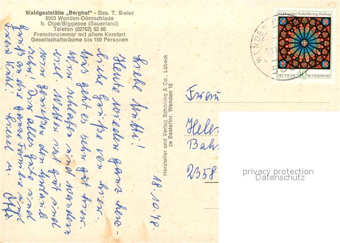 73544575 alte Postkarte Wenden Biggetal Waldgaststaette Berghof Gastraeume Bar Panorama postalisch gelaufen Erhaltung siehe scans [WerneD78] KatCode: 11110005966028
