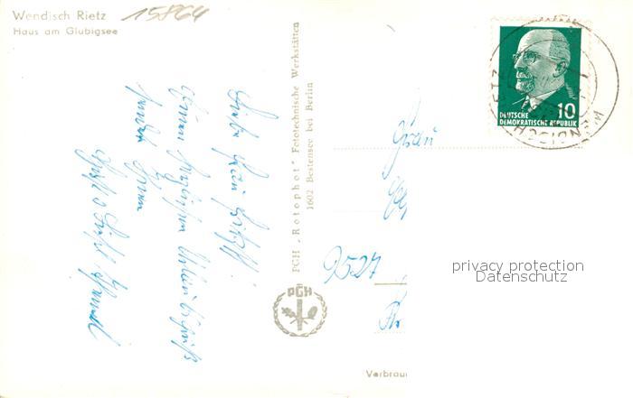 73543765 alte Postkarte Wendisch Rietz Haus am Glubigsee postalisch gelaufen Erhaltung siehe scans [FriedD77] KatCode: 11110012067520