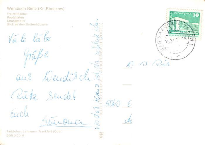 73915070 alte Postkarte Wendisch Rietz Jugenderholungszentrum am Scharmuetzelsee Freizeitflaeche Bootshafen Strandmotiv Blick zu den Bettenhaeusern postalisch gelaufen Erhaltung siehe scans [WerneD78] KatCode: 11110012067520