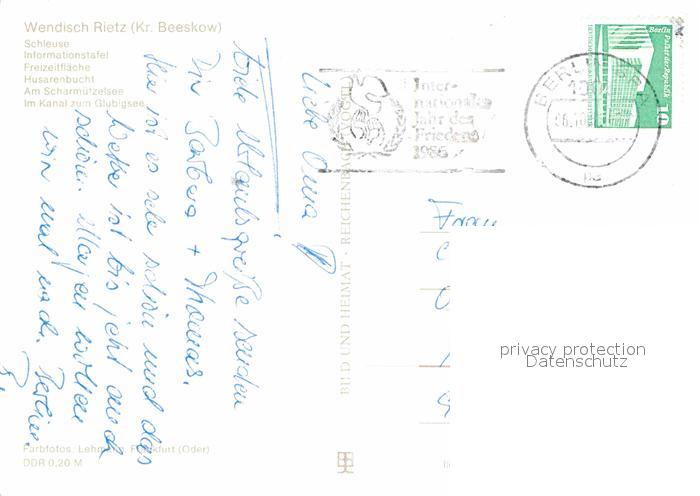 72655628 alte Postkarte Wendisch Rietz Schleuse Husarenbucht Scharmuetzelsee postalisch gelaufen Erhaltung siehe scans [AndreD76] KatCode: 11110012067520