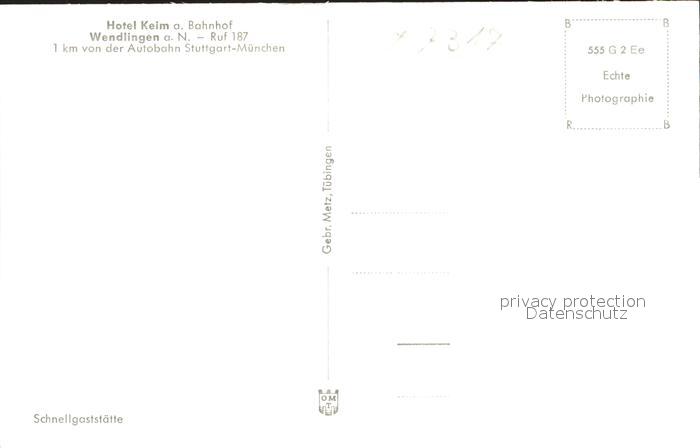 41760291 Wendlingen Neckar Hotel Keim am Bahnhof innen postalisch nicht gelaufen Erhaltung siehe scans KatCode: 11110008116071