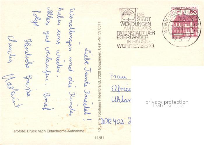 73168242 alte Postkarte Wendlingen Neckar Schwimmbad KircheRathaus postalisch gelaufen Erhaltung siehe scans [KathaD81] KatCode: 11110008116071