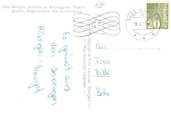 13916129 alte Postkarte Wengen BE Ferienheim Waldegg mit Tschingelhorn Gspaltenhorn und Schwarzbirg postalisch gelaufen Erhaltung siehe scans [FriedD77] KatCode: 11470060175274
