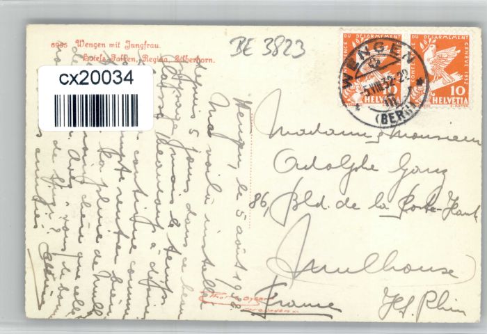 10737987 alte Postkarte Wengen BE Wengen Jungfrau Hotels Falken Regina Silberhorn postalisch gelaufen KatCode: 11470060175274