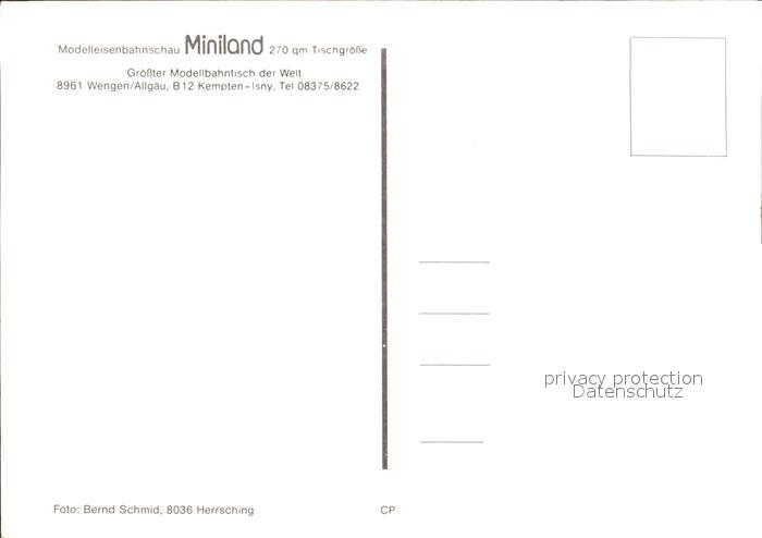 72333241 Wengen Kempten Allgaeu Modelleisenbahnschau Miniland Groesster Modellbahntisch der Welt postalisch nicht gelaufen Erhaltung siehe scans KatCode: 11110009780144