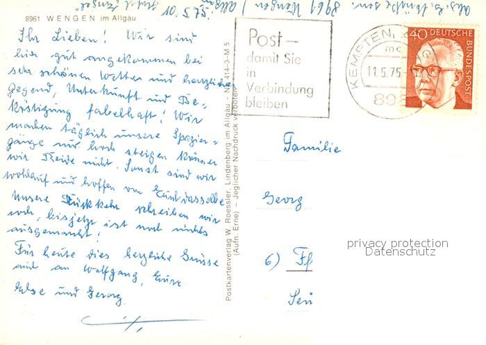73271821 alte Postkarte Wengen Kempten Allgaeu Panorama Brunnen Park Maibaum Gasthaus postalisch gelaufen Erhaltung siehe scans [WerneD78] KatCode: 11110009780144
