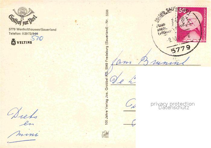 72895213 alte Postkarte Wenholthausen Gasthof zur Post postalisch gelaufen Erhaltung siehe scans [AndreD76] KatCode: 11110005958016