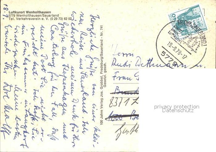 72461974 alte Postkarte Wenholthausen Luftkurort postalisch gelaufen Erhaltung siehe scans KatCode: 11110005958016