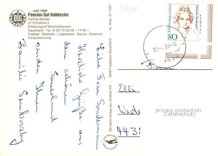 73870933 alte Postkarte Wenholthausen Pension Gut Habbecke postalisch gelaufen Erhaltung siehe scans [WerneD78] KatCode: 11110005958016