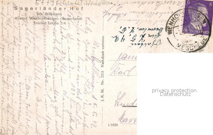 73789733 alte Postkarte Wenholthausen Sauerlaenderhof Aussenansicht Fachwerkstil postalisch gelaufen Erhaltung siehe scans [LiesaD40] KatCode: 11110005958016