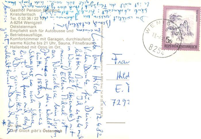 73904796 alte Postkarte Wenigzell Gasthof zur Taverne Restaurant Fremdenzimmer Panorama postalisch gelaufen Erhaltung siehe scans [FriedD77] KatCode: 11390224060749