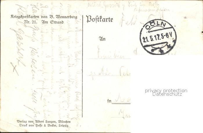 alte Postkarte Wennerberg Brynolf Kriegspostkarte Nr. 21 Am Strand postalisch gelaufen Feldpost Erhaltung siehe scans