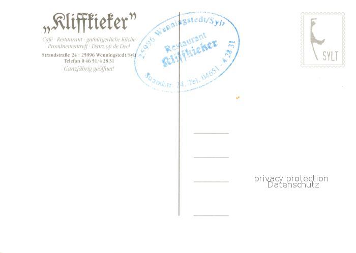 73169431 Wenningstedt Sylt Cafe Restaurant Kliffkieker Strand postalisch nicht gelaufen Erhaltung siehe scans [FriedD77] KatCode: 11110001054149