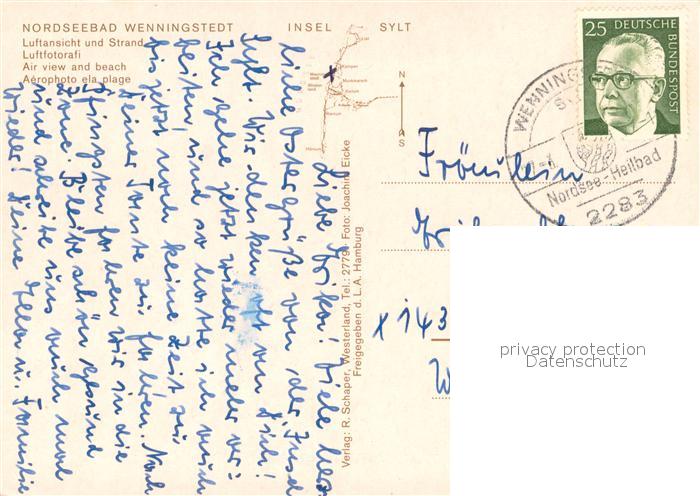 73723757 alte Postkarte Wenningstedt Sylt Fliegeraufnahme postalisch gelaufen Erhaltung siehe scans [WerneD78] KatCode: 11110001054149