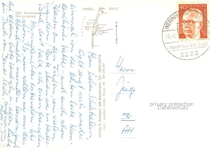 73337976 alte Postkarte Wenningstedt Sylt Fliegeraufnahme postalisch gelaufen Erhaltung siehe scans [WerneD78] KatCode: 11110001054149