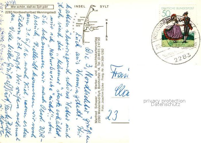 73101103 alte Postkarte Wenningstedt Sylt Fliegeraufnahme postalisch gelaufen Erhaltung siehe scans [WerneD78] KatCode: 11110001054149