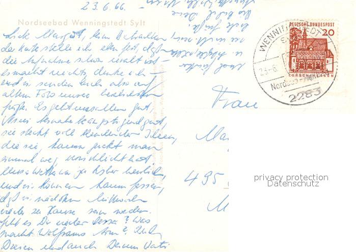 73020068 alte Postkarte Wenningstedt Sylt Fliegeraufnahme postalisch gelaufen Erhaltung siehe scans [WerneD78] KatCode: 11110001054149