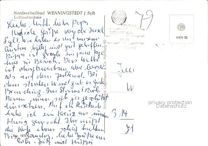 72317468 alte Postkarte Wenningstedt Sylt Fliegeraufnahme postalisch gelaufen Erhaltung siehe scans KatCode: 11110001054149