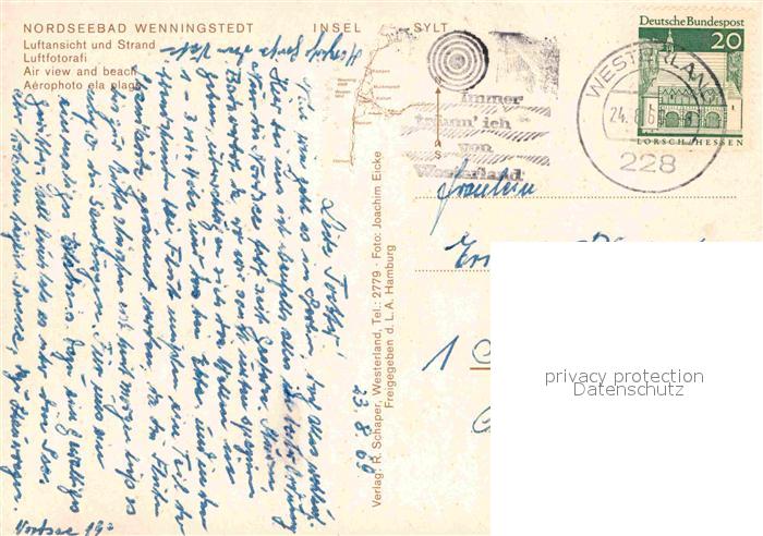 72792232 alte Postkarte Wenningstedt Sylt Fliegeraufnahme mit Strand postalisch gelaufen Erhaltung siehe scans [LiesaD40] KatCode: 11110001054149