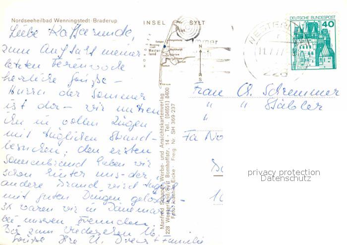 72775110 alte Postkarte Wenningstedt Sylt Fliegeraufnahme Strand Duene postalisch gelaufen Erhaltung siehe scans [AndreD76] KatCode: 11110001054149