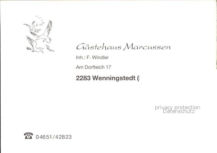 71831789 Wenningstedt Sylt Gaestehaus Marcussen postalisch nicht gelaufen Keine Postkarte (siehe scan) Erhaltung siehe scans KatCode: 11110001054149