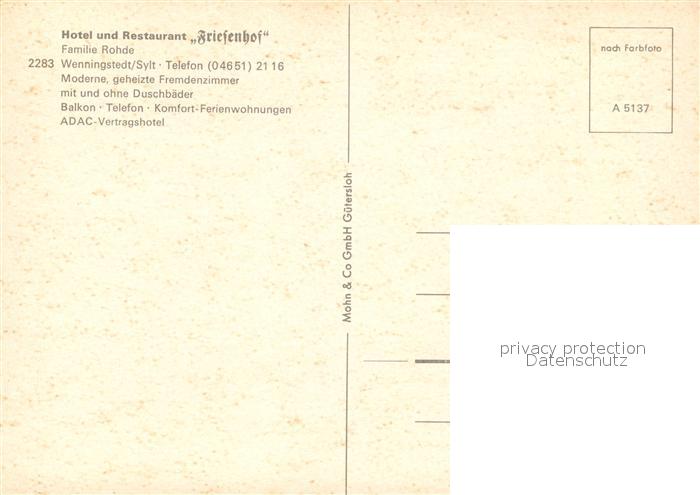 73048327 Wenningstedt Sylt Hotel Friesenhof Restaurant postalisch nicht gelaufen Erhaltung siehe scans [WerneD78] KatCode: 11110001054149