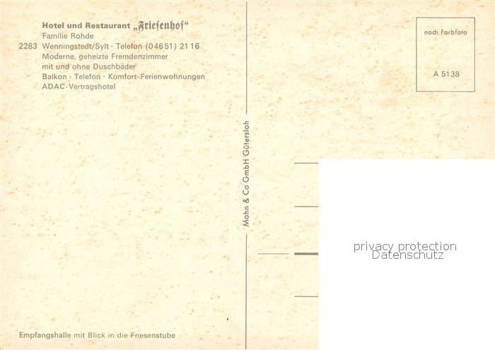 73048326 Wenningstedt Sylt Hotel Restaurant Friesenhof postalisch nicht gelaufen Erhaltung siehe scans [WerneD78] KatCode: 11110001054149