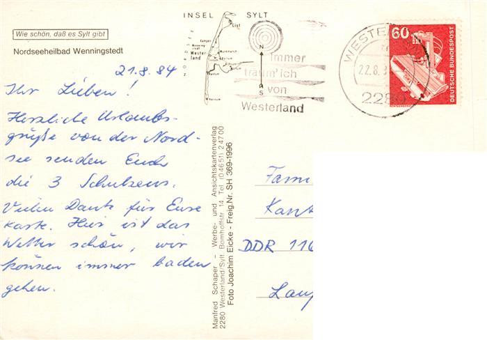 73945936 alte Postkarte Wenningstedt Sylt Nordseeheilbad postalisch gelaufen Fliegeraufnahme Erhaltung siehe scans [FriedD77] KatCode: 11110001054149