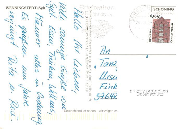 73293708 alte Postkarte Wenningstedt Sylt Promenade Strand Friesenhaus postalisch gelaufen Erhaltung siehe scans [FriedD77] KatCode: 11110001054149