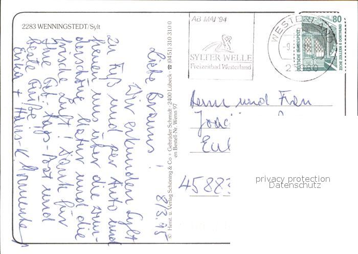 72568430 alte Postkarte Wenningstedt Sylt Starnd AnsichtLuftaufnahme postalisch gelaufen Erhaltung siehe scans [KathaD79] KatCode: 11110001054149