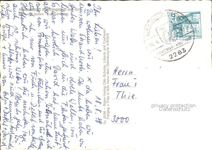 71892360 alte Postkarte Wenningstedt Sylt Strand Fliegeraufnahme postalisch gelaufen KatCode: 11110001054149