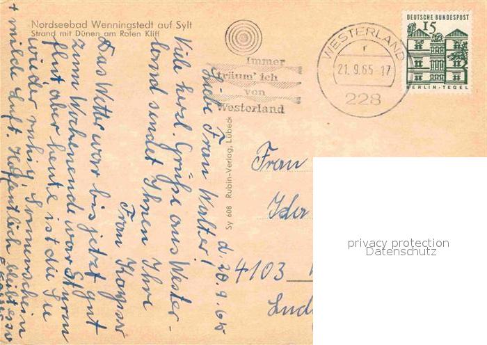 72692907 alte Postkarte Wenningstedt Sylt Strand mit Duenen am Roten Kliff postalisch gelaufen Erhaltung siehe scans [FriedD77] KatCode: 11110001054149