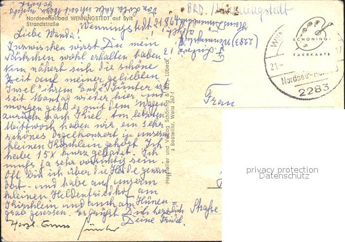 72540556 alte Postkarte Wenningstedt Sylt Strandstrasse postalisch gelaufen Erhaltung siehe scans [LiesaD40 kt122box] KatCode: 11110001054149