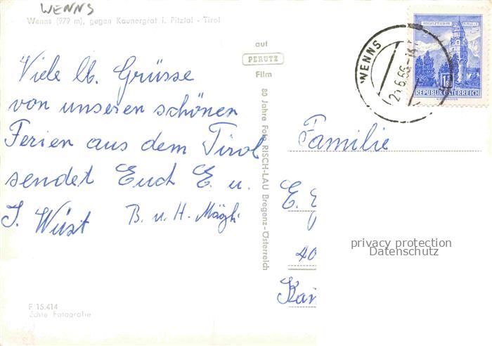 74157581 alte Postkarte Wenns Pitztal Tirol AT Kaunergrat Pitztal Kirchturm Dorf Bergpanorama Bergwiesen postalisch gelaufen Erhaltung siehe scans [Karloger] KatCode: 11390334070224