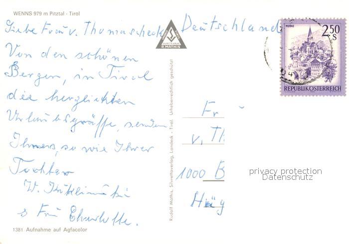73577723 alte Postkarte Wenns Pitztal Tirol Bergdorf mit Kirche postalisch gelaufen Erhaltung siehe scans [FriedD77] KatCode: 11390334070224