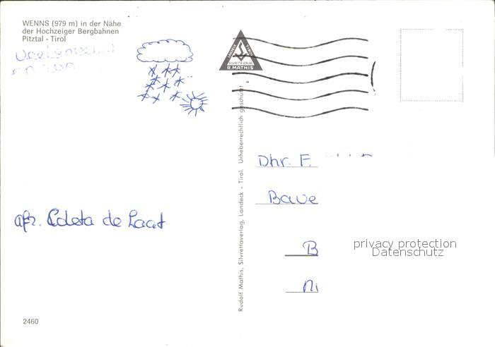 72417359 alte Postkarte Wenns Pitztal Tirol Winterpanorama Pitztal Hochzeiger Bergbahnen postalisch gelaufen Erhaltung siehe scans KatCode: 11390334070224