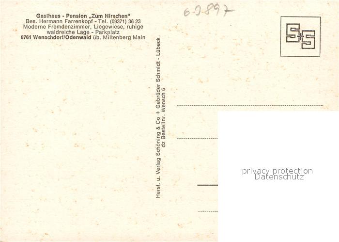 73570033 Wenschdorf Gasthaus Pension Zum Hirschen Gaststube Kinderspielplatz postalisch nicht gelaufen Erhaltung siehe scans [FriedD77] KatCode: 11110009676139