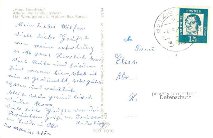 43366565 alte Postkarte Wenzigerode Altersheim Erholungsheim Haus Ebersberg postalisch gelaufen Erhaltung siehe scans [FriedD77] KatCode: 11110006634027