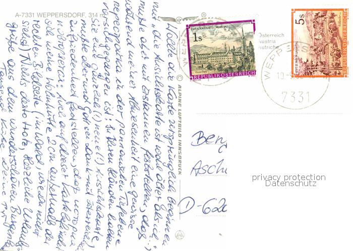 72773456 alte Postkarte Weppersdorf Burgenland Fliegeraufnahme postalisch gelaufen Erhaltung siehe scans [FriedD77] KatCode: 11390111010823