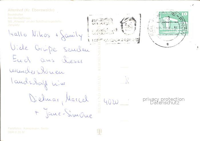 72306620 alte Postkarte Werbellinsee-Altenhof Bootshafen MS Altwarp Schiffsanlegestelle Zeltplatz postalisch gelaufen Erhaltung siehe scans KatCode: 11110012060198