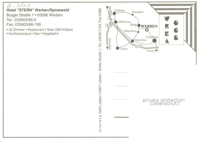 73644550 Werben Niederlausitz Hotel Stern im Spreewald Kahnfahrt Wasserstrasse postalisch nicht gelaufen Erhaltung siehe scans [FriedD77] KatCode: 11110012071412