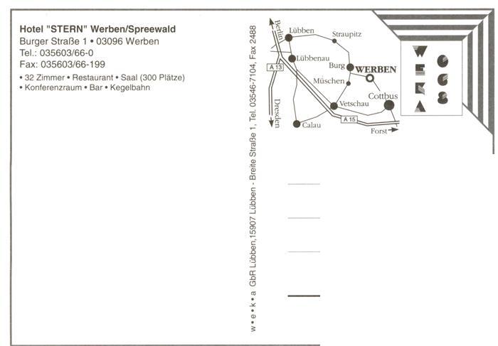 73880508 Werben Niederlausitz Hotel Stern Zimmer Gastraum Spreewald Bootspartie postalisch nicht gelaufen Erhaltung siehe scans [WerneD78] KatCode: 11110012071412