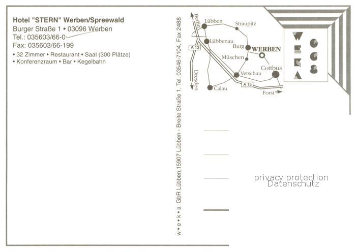 73648338 Werben Niederlausitz Hotel Stern Zimmer Gaststube Spreewald Bootsfahrt postalisch nicht gelaufen Erhaltung siehe scans [WerneD78] KatCode: 11110012071412