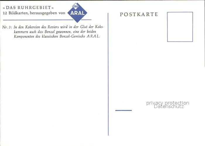 72132035 Werbung Reklame Aral Das Ruhrgebiet Bildkarte Nr. 3 Kokerei Kokskammer Benzol KatCode 22060000008200