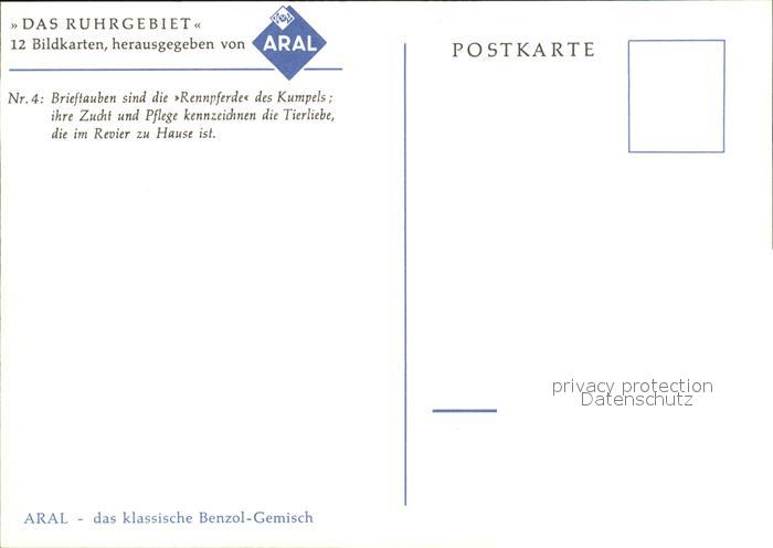 72132034 Werbung Reklame Aral Das Ruhrgebiet Bildkarte Nr. 4 Brieftauben KatCode 22060000008200